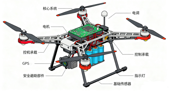 我们以最常见的多旋翼无人机(如四旋翼)为例。它的飞行奥秘全在于四个螺旋桨的转速配合。